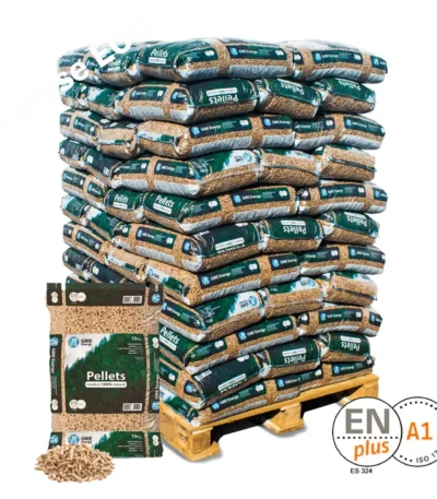GME WoodPellet – Palet de 77 sacos de pellet 15 kg (1.155 kg) – EN‑Plus A1